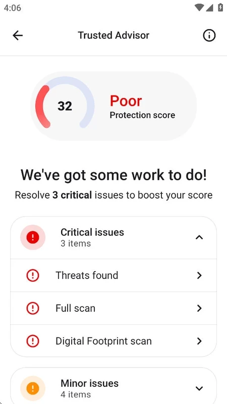 L'app è in grado di fornire un punteggio completo per la sicurezza del tuo dispositivo e offre anche consigli basati sul punteggio per una migliore gestione del dispositivo. Puoi anche impedire modifiche non autorizzate alla protezione antimanomissione tramite le impostazioni di sicurezza di Malwarebytes Anti-Malware, impedendo al malware di disattivare le funzionalità di sicurezza.